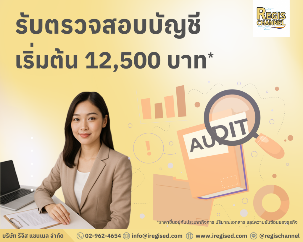 หากเปิดกิจการเป็นบริษัท (นิติบุคคล) มีหน้าที่ต้องจัดให้มีการ ตรวจสอบบัญชีประจำปี ซึ่ง Regis Channel ให้บริการ รับตรวจสอบบัญชี โดยผู้สอบบัญชีรับอนุญาต (CPA) เพื่อให้มั่นใจว่างบการเงินถูกต้อง โปร่งใส เราดูแลทั้งธุรกิจ SMEs และบริษัทขนาดกลาง ด้วยกระบวนการตรวจสอบที่เป็นระบบ
