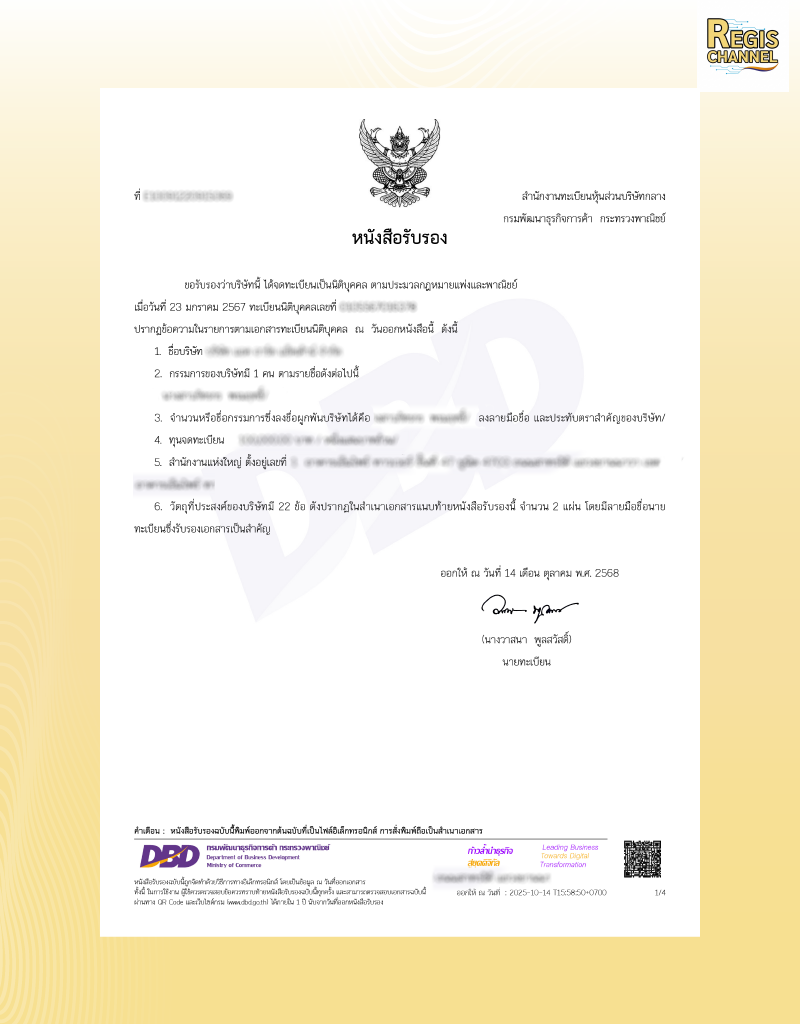 เพราะเอกสารนี้เป็นหลักฐานทางกฎหมาย ที่ผู้อื่นยอมรับได้ว่า บริษัทเราอยู่ในระบบจริง