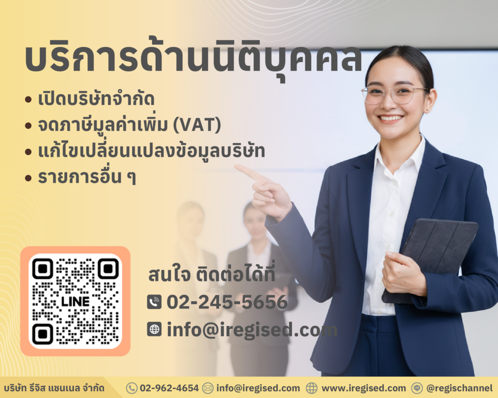 ให้บริการเปิดบริษัทครบวงจร ตั้งแต่จัดตั้งบริษัท ห้างหุ้นส่วน ไปจนถึงการจดภาษีมูลค่าเพิ่ม ประกันสังคม และการเปลี่ยนแปลงข้อมูลต่าง ๆ