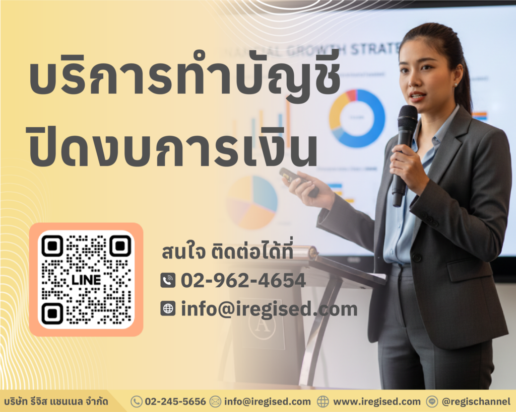 Regis Channel เป็นสำนักงานบัญชี ให้บริการครบวงจร ตั้งแต่การเปิดกิจการ รับทำบัญชี ยื่นภาษี ไปจนถึงตรวจสอบบัญชี เราดูแลทั้งธุรกิจเปิดใหม่ และธุรกิจที่ต้องการระบบบัญชีที่ชัดเจน เพื่อให้คุณมั่นใจในตัวเลข การเงิน และภาษีของกิจการ